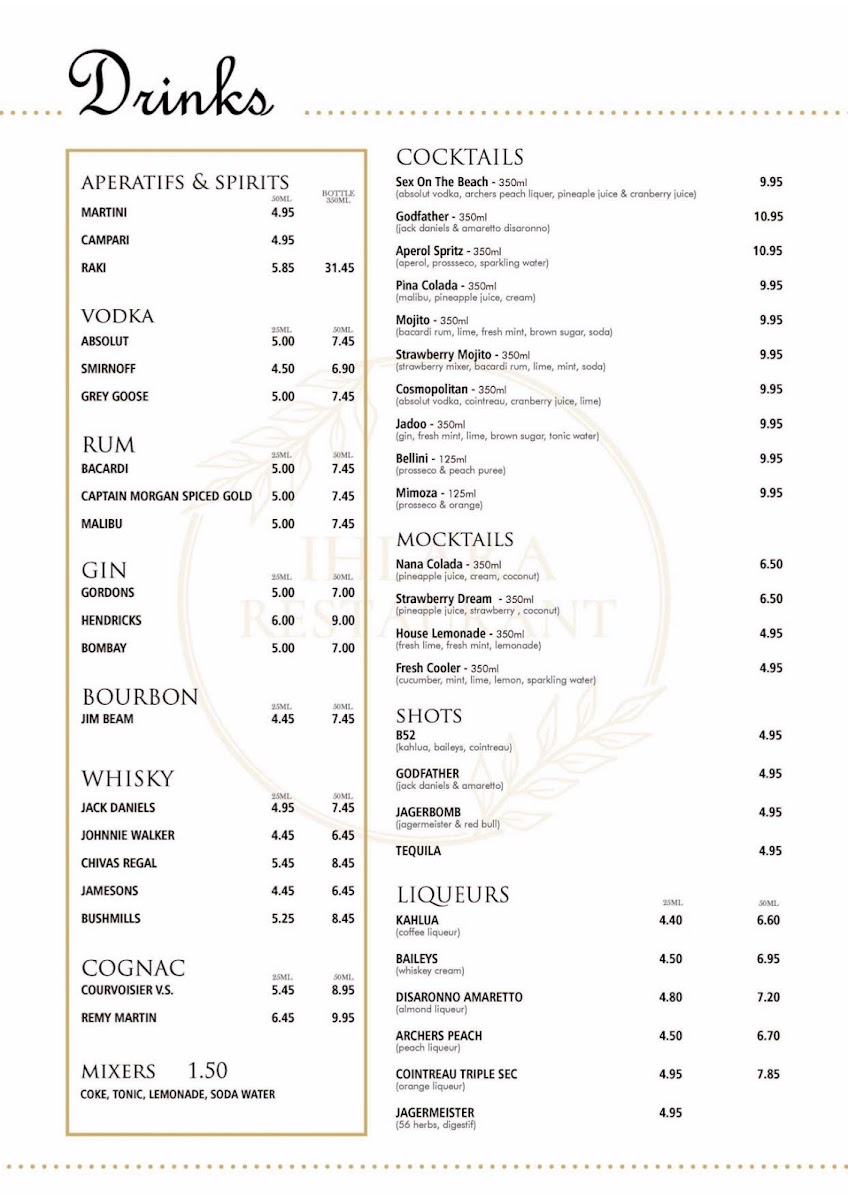 If seafood is your preference, indulge in the Grilled Salmon or Grilled Sea Bass, each served with sautéed potatoes and asparagus, offering a delightful culinary experience. The standout calamari and king prawns further showcase the restaurant's commitment to freshness and flavor.